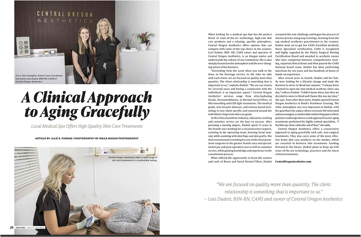 At Central Oregon Aesthetics, we focus on non-surgical cosmetic treatments designed to highlight your natural beauty. Your care, comfort, and confidence guide everything we do. Each service is performed with attention to detail and years of clinical experience. Whether you want smoother skin, fewer fine lines, or an overall healthy glow, our treatments are made to help you look fresh and feel confident.